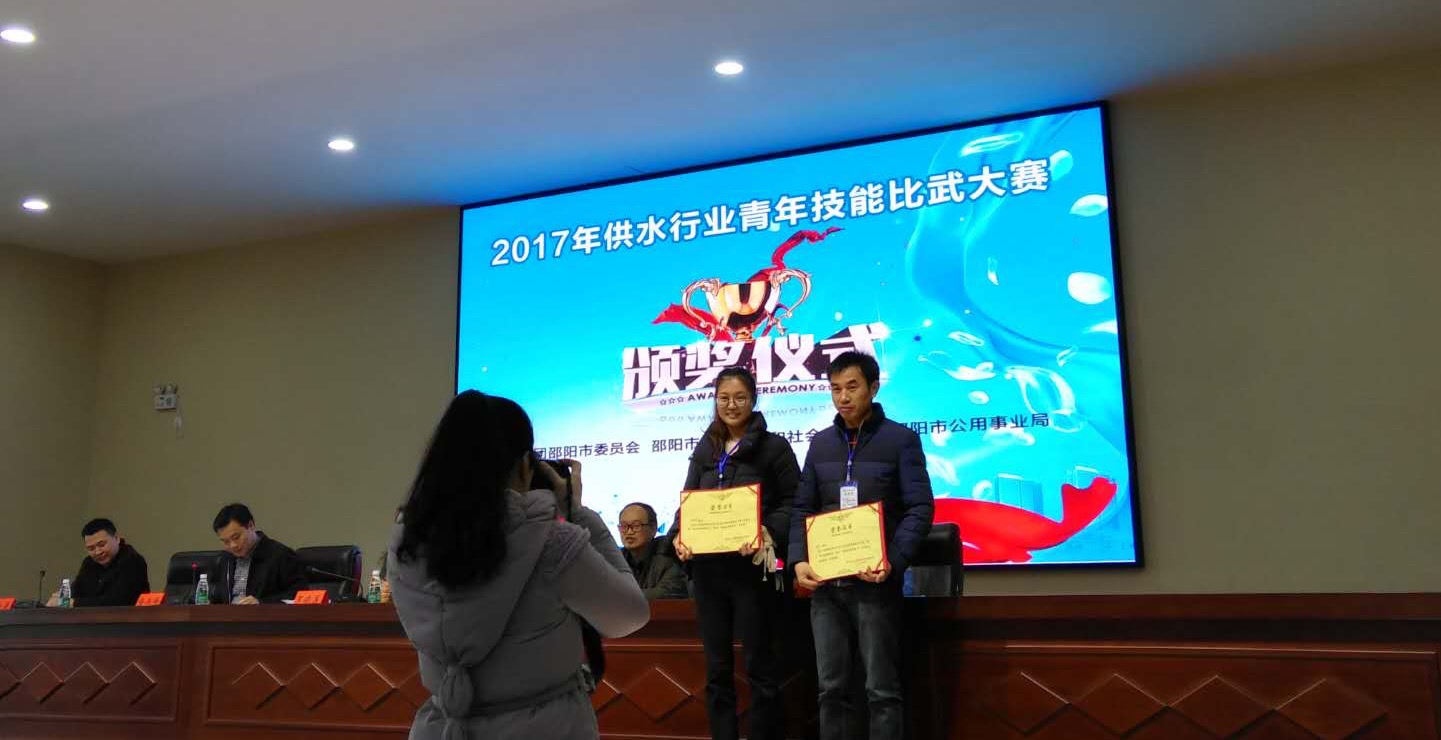 来自全市的34名参赛选手经过两天的精彩角逐后,我公司的尹锦辉、谢赛平分别斩获水质化验项目、电工项目比赛的一等奖,并被授予“邵阳市技术能手”的称号。